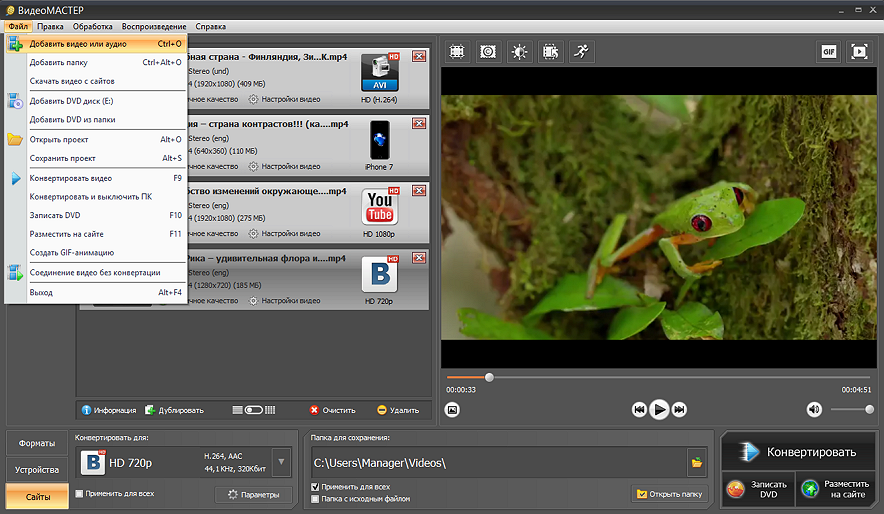 Любой пользователь ПК хотя бы раз сталкивался с задачей смены формата видеофайла. Для быстрой и надежной конвертации отлично подойдет бесплатная версия видеомастер 12.6. Данная утилита позволит быстро настроить параметры видео. Вы можете выбрать необходимый формат, а также производить конвертацию роликов в MKV. К тому же продукт предлагает большой перечень готовых шаблонов для мобильных устройств.