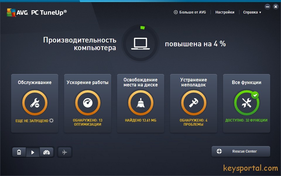 Искать свежие ключи для AVG PC TuneUp Pro вам не понадобится, так как мы разметили рабочую программку с вшитым ключом на русском языке. Работать она будет без ограничений.