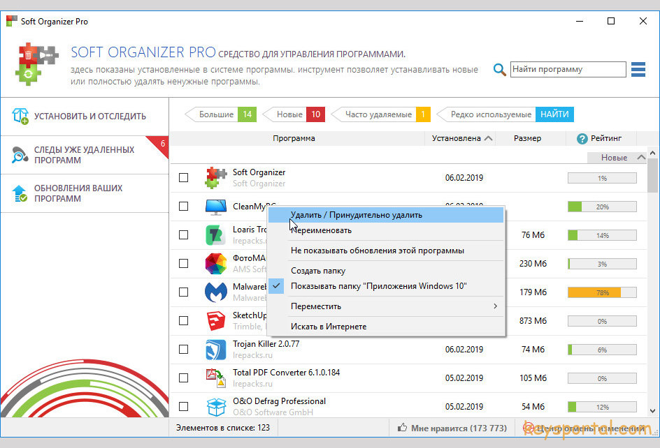 Продукт осуществляет тщательный контроль за всеми изменениями, вносимыми в систему разными приложениями. Пользователь получает полный список файлов, которые были изменены или внесены в реестр в результате деятельности приложений. Создатели утилиты убеждены, что Soft Organizer Pro отличается от собратьев скоростью и функционалом. Компания-разработчик уже много лет специализируется на создании программ для очистки системы от мусора.